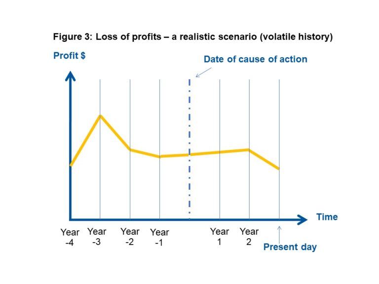 In very basic terms, the difference in profits in the but for scenario (i.e. absent the cause of action) and actual scenario (i.e. as a consequence of the cause of action), as shown in Figure 2 above, represents the loss of profits that will be claimed as damages.